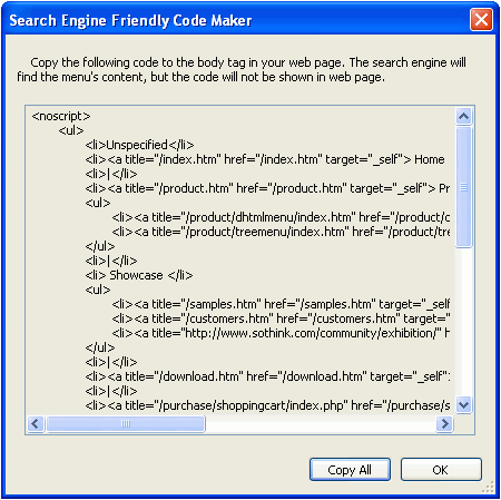 3. Next, you can publish your script drop down menus to webpage, however, you needn’t write any scripts but only copy and paste the scripts which are generated by the program automatically to some specified area. Here is the tutorial.